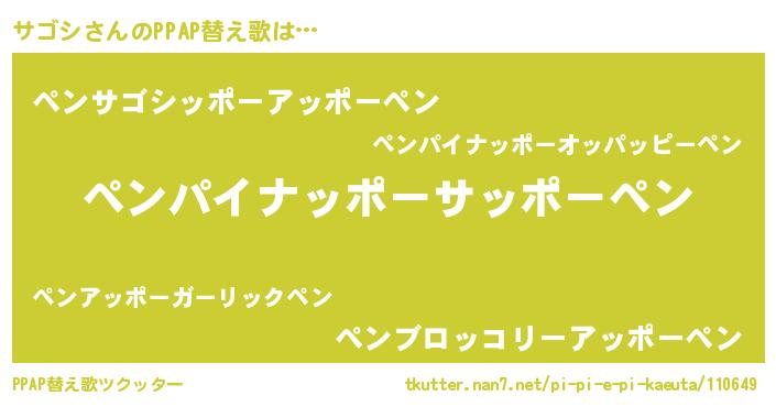 | ピコ太郎風あだ名 | 『ピコサ郎』『サゴ十郎』『サコ十郎』 |