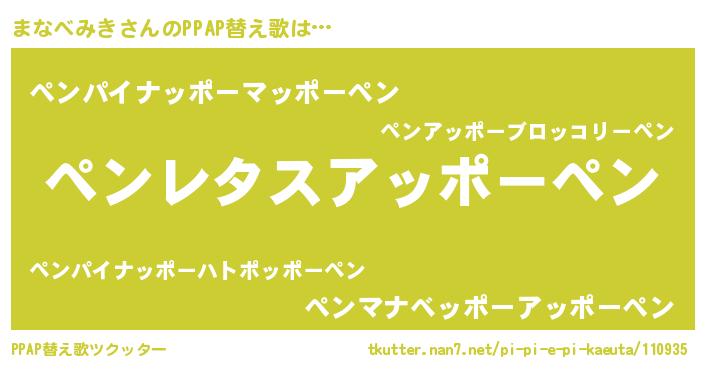 | ヘコむあだ名 | 『まなにゅー』『まなべみき(苦笑)』 |