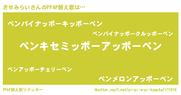 | ヘコむあだ名 | 『きせっ子』『きせみらい(小並感)』 |