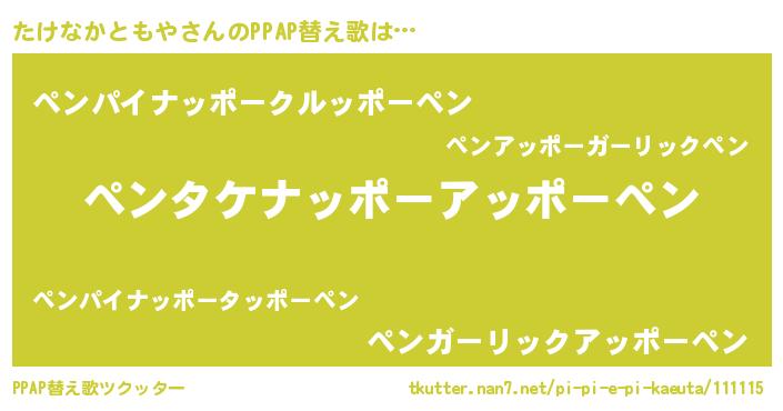 | 欧米人風あだ名 | 『ウサインたけなかともや』 |