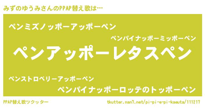 | 意味不明あだ名 | 『ヨモギ科みずのゆうみ属』 |