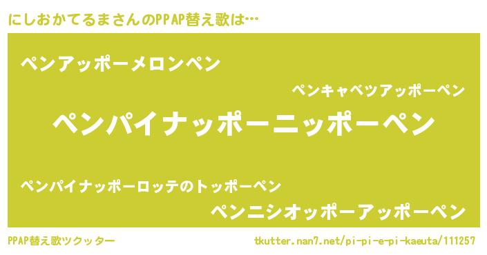 | 意味不明あだ名 | 『住所不定無職にしおかてるま(56歳)』 |