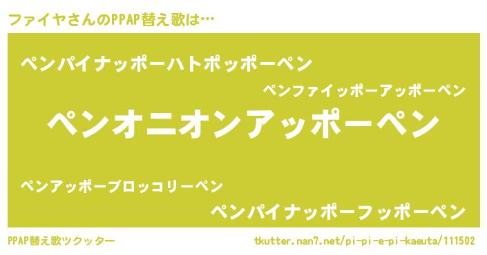 | ツイッター | ファイヤさんのツイッターID『katatsumuri_kun』 |