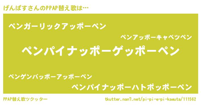 | 意味不明あだ名 | 『自称げんばす』『永久保存げんばす』 |
