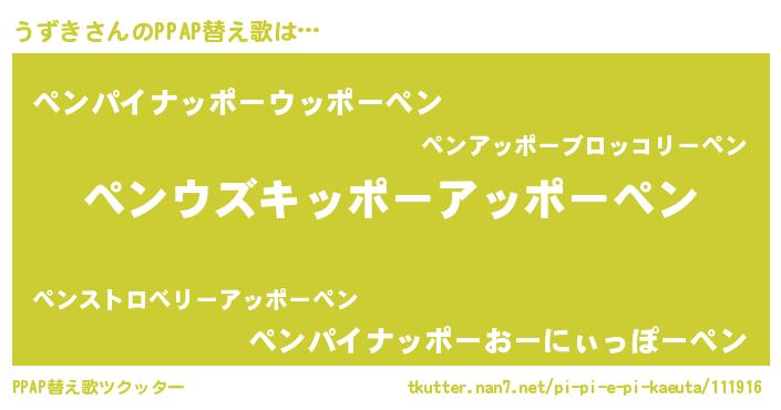 | ピコ太郎風あだ名 | 『ウズ三郎』『ピコウ郎』『ウウ太郎』 |