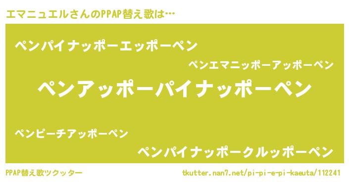 | ピコ太郎風あだ名 | 『ピエ太郎』『ピコエ郎』『エエ太郎』 |