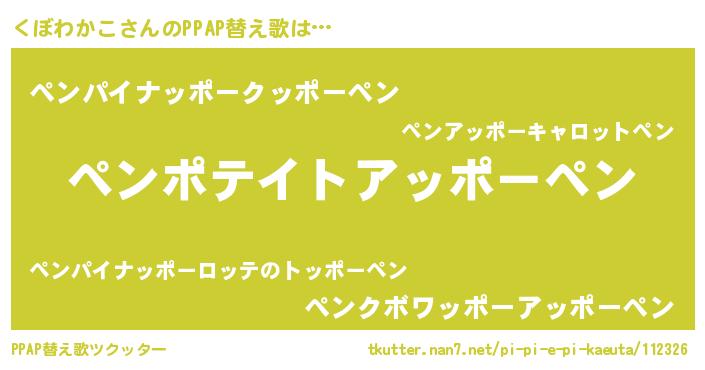 | 意味不明あだ名 | 『自称くぼわかこ』『ペロリンくぼわかこ』 |