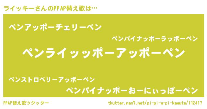 | ピコ太郎風あだ名 | 『ライ五郎』『ピラ一郎』『ララ太郎』 |