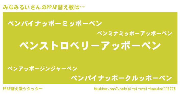 | 欧米人風あだ名 | 『みなみるい・ステッグマイヤー』 |