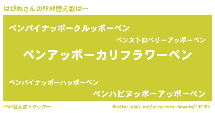 | 男性向けラノベタイトル風あだ名 | 『はたらくはぴぬさま!』『緋弾のハピヌ』 |