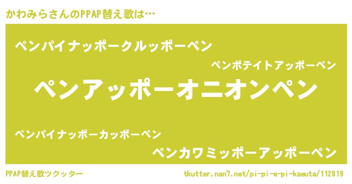 | ピコ太郎風あだ名 | 『ピカ六郎』『カカ太郎』『カワ二郎』 |