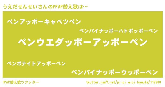 | ピコ太郎風あだ名 | 『ウエ一郎』『ピウ四郎』『ピコウ郎』 |