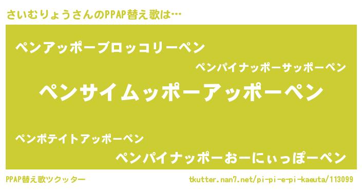 | 欧米人風あだ名 | 『トリンドルさいむりょう』 |