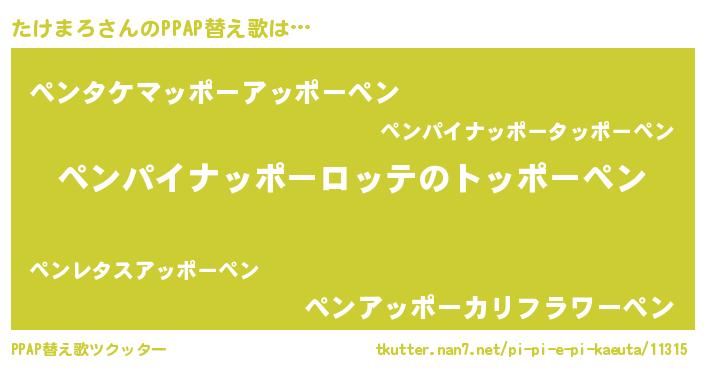 | ピコ太郎風あだ名 | 『タタ太郎』『タケ次郎』『ピタ史郎』 |