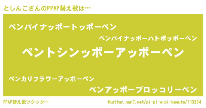 | ピコ太郎風あだ名 | 『トシ六郎』『ピコト郎』『ピト八郎』 |