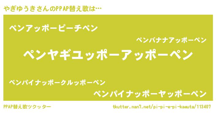 | 欧米人風あだ名 | 『やぎゆうき・ステッグマイヤー』 |