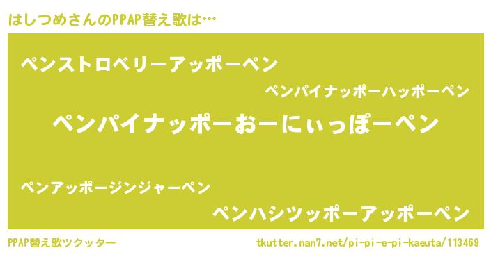 | ピコ太郎風あだ名 | 『ハハ太郎』『ハコ一郎』『ハシ史郎』 |