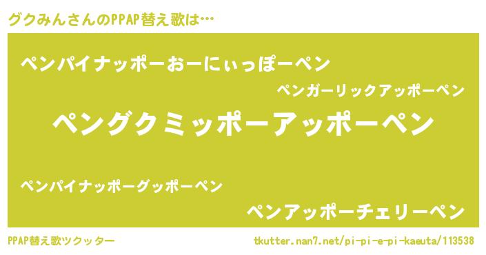 | ピコ太郎風あだ名 | 『グク六郎』『ググ太郎』『ピグ五郎』 |