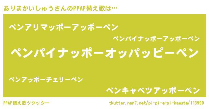 | ピコ太郎風あだ名 | 『アア太郎』『アリ八郎』『アコ太郎』 |