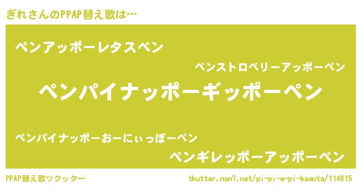 | ピコ太郎風あだ名 | 『ピコギ郎』『ピギ史郎』『ギレ五郎』 |