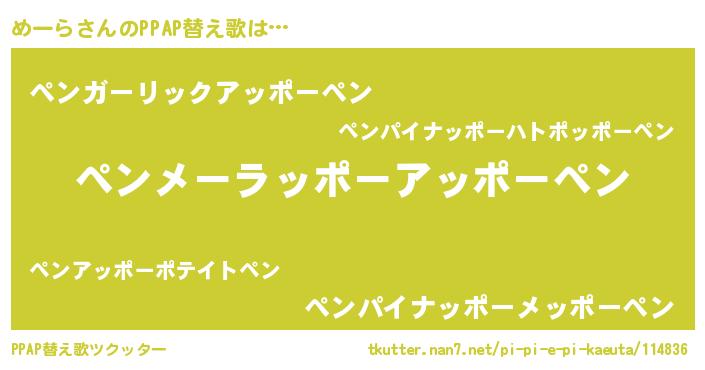 | ヘコむあだ名 | 『めーぷりん』『めーっふぃ~』 |