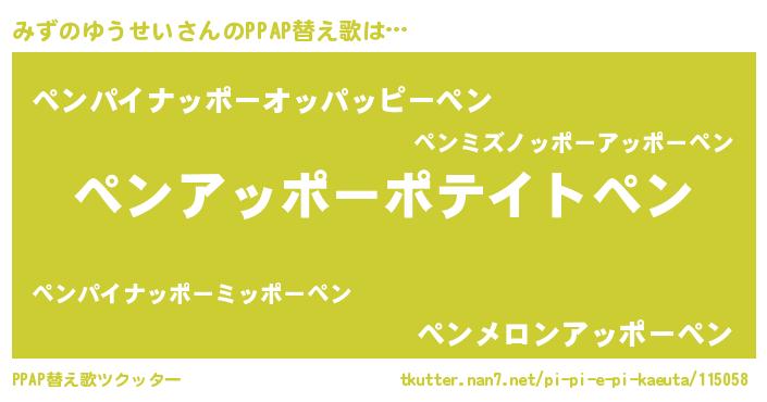 | 意味不明あだ名 | 『住所不定無職みずのゆうせい(68歳)』 |