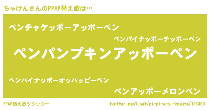 | 意味不明あだ名 | 『ペロリンちゃけん』『自称ちゃけん』 |