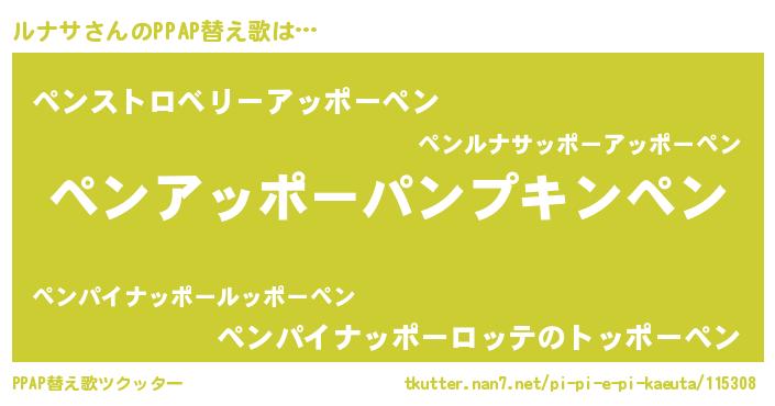 | 意味不明あだ名 | 『ルナサフォーエバー』『ペロリンルナサ』 |
