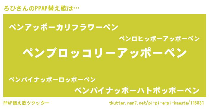 | ピコ太郎風あだ名 | 『ロコ十郎』『ピロ八郎』『ロロ太郎』 |