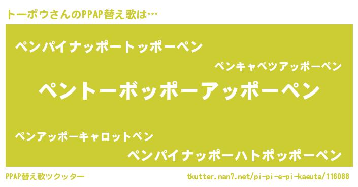 | ピコ太郎風あだ名 | 『トー次郎』『ピコト郎』『トト太郎』 |