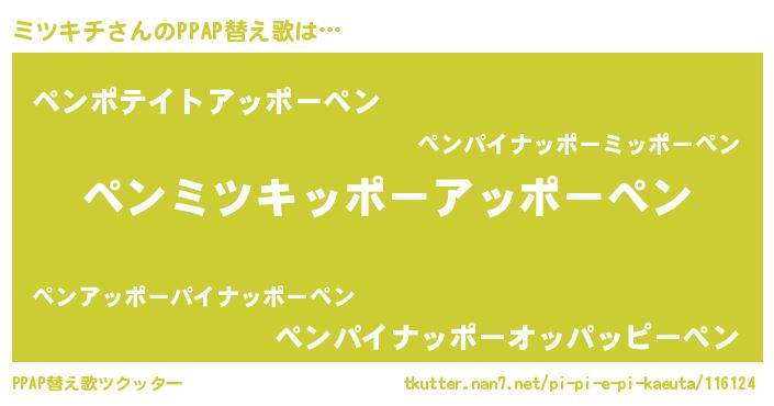 | ピコ太郎風あだ名 | 『ミツ史郎』『ミコ五郎』『ミミ太郎』 |