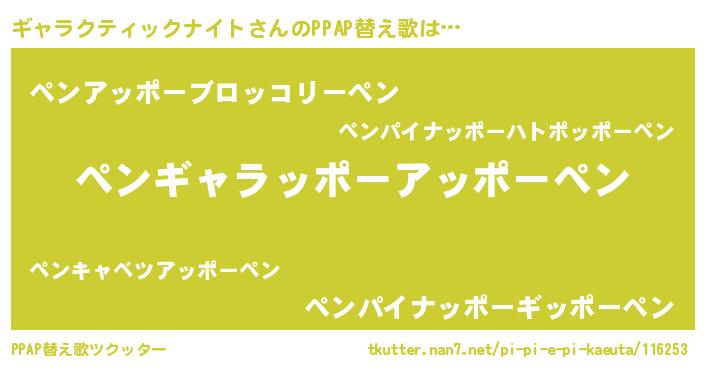 | 意味不明あだ名 | 『とにかく怪しいギャラクティックナイト』 |