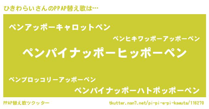 | 胡散臭い通販商品みたいなあだ名 | 『絶対に幸福をもたらす水素水…その名も「ひきわらい」』 |