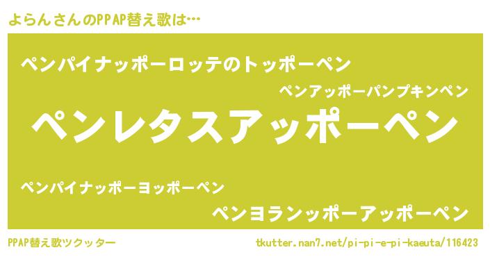 | 意味不明あだ名 | 『ペロリンよらん』『自称よらん』 |
