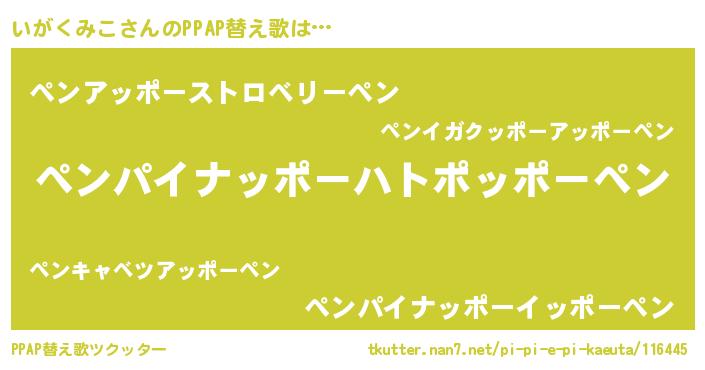 | 肩書あだ名 | 『いがくみこ少佐』『いがくみこ艦長』 |