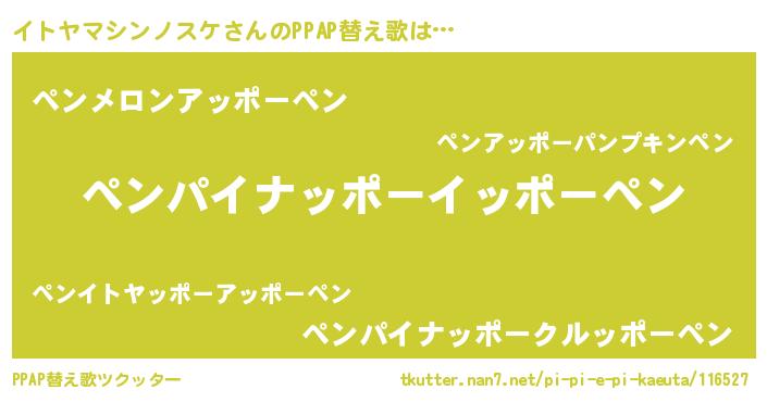 | 男性向けラノベタイトル風あだ名 | 『うちのイトヤマシンノスケが世界を掌握している!』 |