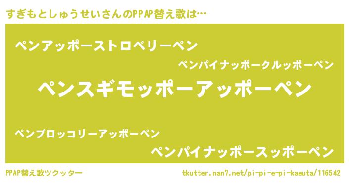 | ピコ太郎風あだ名 | 『スギ五郎』『ピス一郎』『ピコス郎』 |