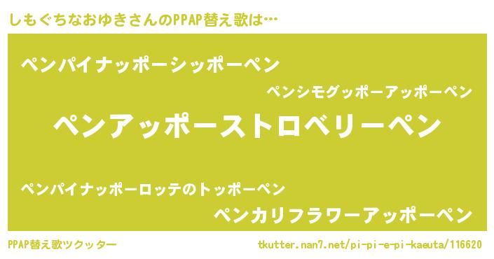 | 肩書あだ名 | 『しもぐちなおゆき大統領』 |