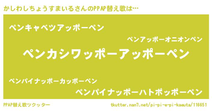 | 欧米人風あだ名 | 『トリンドルかしわしちょうすまいる』 |