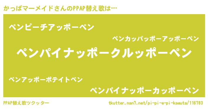| 男性向けラノベタイトル風あだ名 | 『おまえをオタクにしてやるから、俺をかっぱマーメイドにしてくれ! 』 |