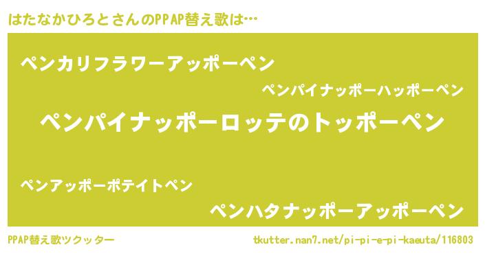 | ピコ太郎風あだ名 | 『ハハ太郎』『ハコ二郎』『ハタ史郎』 |
