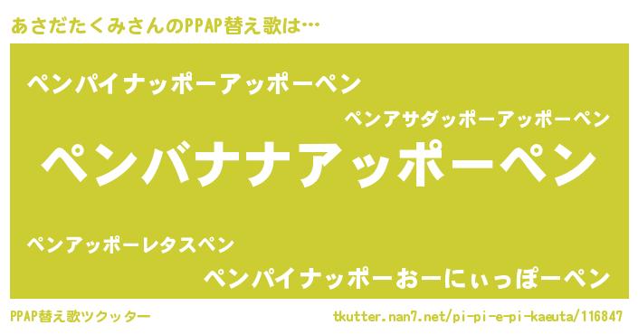 | 料理風あだ名 | 『あさだたくみの炊き込みご飯』 |