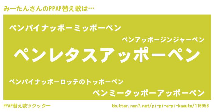 | 意味不明あだ名 | 『ペロリンみーたん』『永久保存みーたん』 |