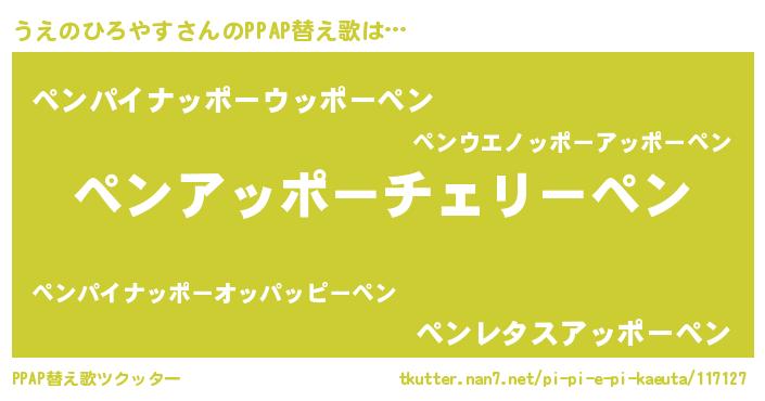 | 肩書あだ名 | 『うえのひろやす大佐』 |