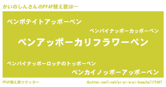 | ピコ太郎風あだ名 | 『ピカ史郎』『カコ八郎』『カイ六郎』 |