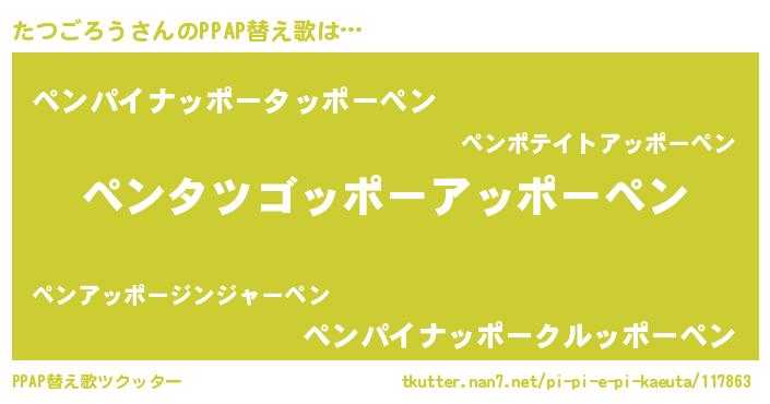 | ピコ太郎風あだ名 | 『タツ一郎』『ピコタ郎』『タタ太郎』 |