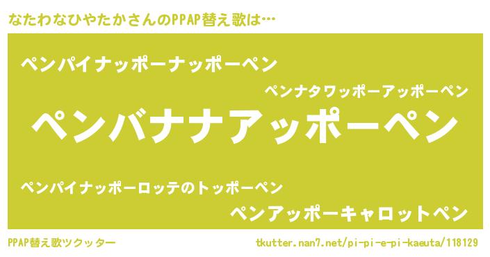 | ピコ太郎風あだ名 | 『ナコ三郎』『ピコナ郎』『ピナ八郎』 |