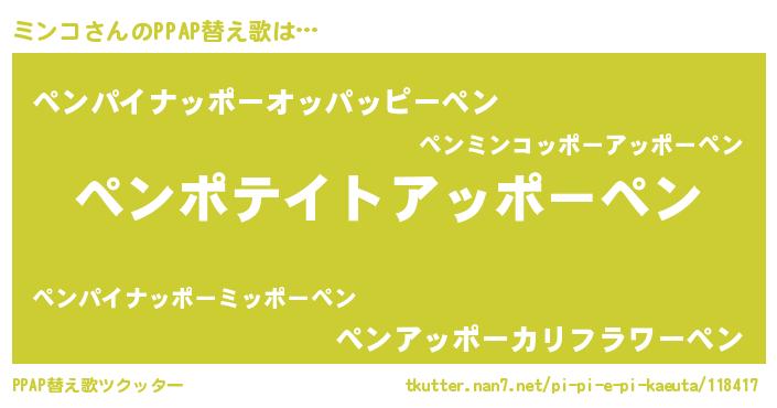 | 意味不明あだ名 | 『ペロリンミンコ』『ミンコフォーエバー』 |