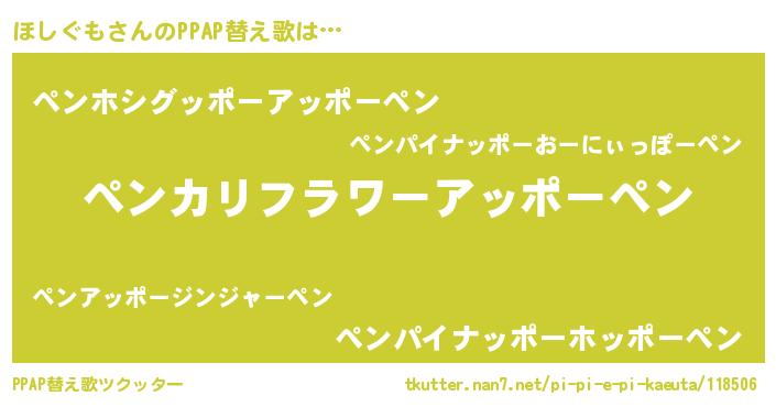 | 意味不明あだ名 | 『ペロリンほしぐも』『自称ほしぐも』 |