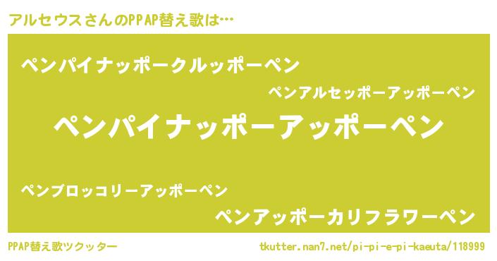 | 意味不明あだ名 | 『永久保存アルセウス』 |